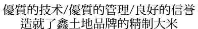 坐落在國家優(yōu)質(zhì)寒地水稻生產(chǎn)基地之一的松嫩平原腹地綏化市秦家鎮(zhèn),諾敏河,呼蘭河澆灌的黑色草甸土地,富含硒                      鉀 鈣                      鐵等礦物質(zhì),無污染的環(huán)境,豐產(chǎn)的水稻資源,使鑫土地米業(yè)不斷發(fā)展壯大,成為綏化地區(qū)新崛起的一支精制大米生產(chǎn)的生力軍。